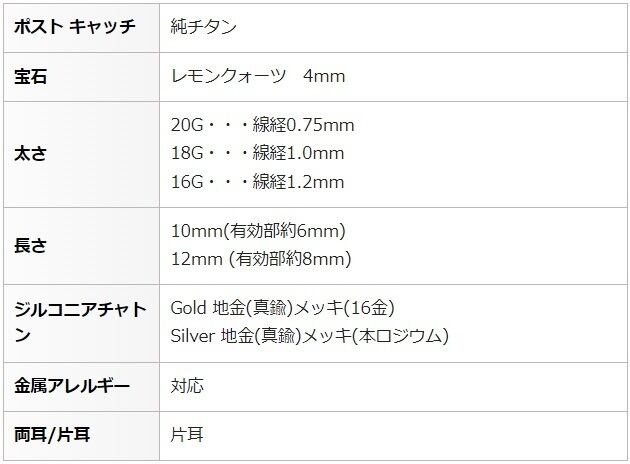 20G-10mm:線径0.75mm ポスト長さ10mm(有効部約6mm)
