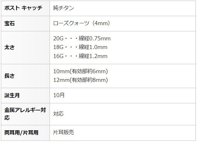 20G-10mm:線径0.75mm ポスト長さ10mm(有効部約6mm)