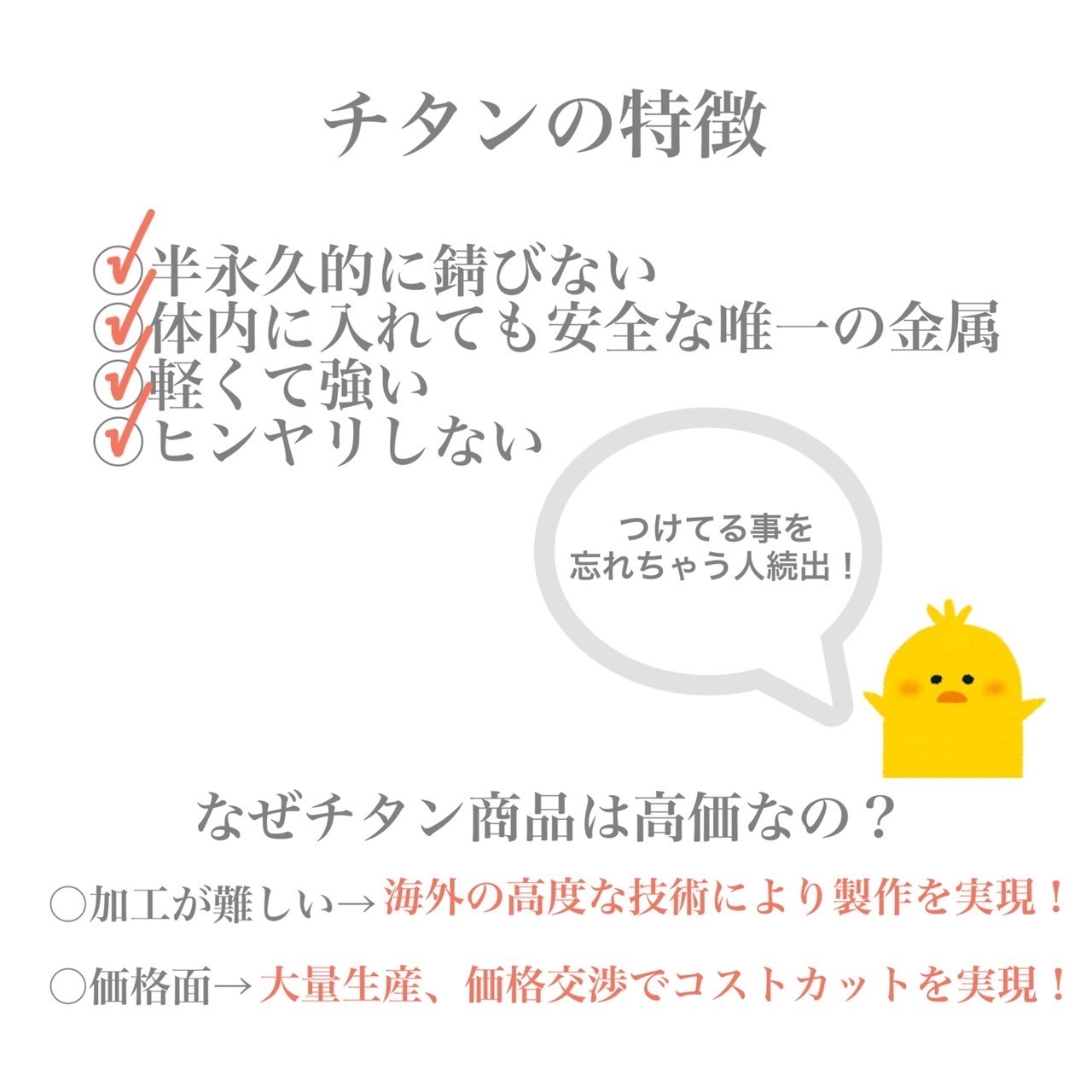 キャッチ:純チタン(純度99.4%)