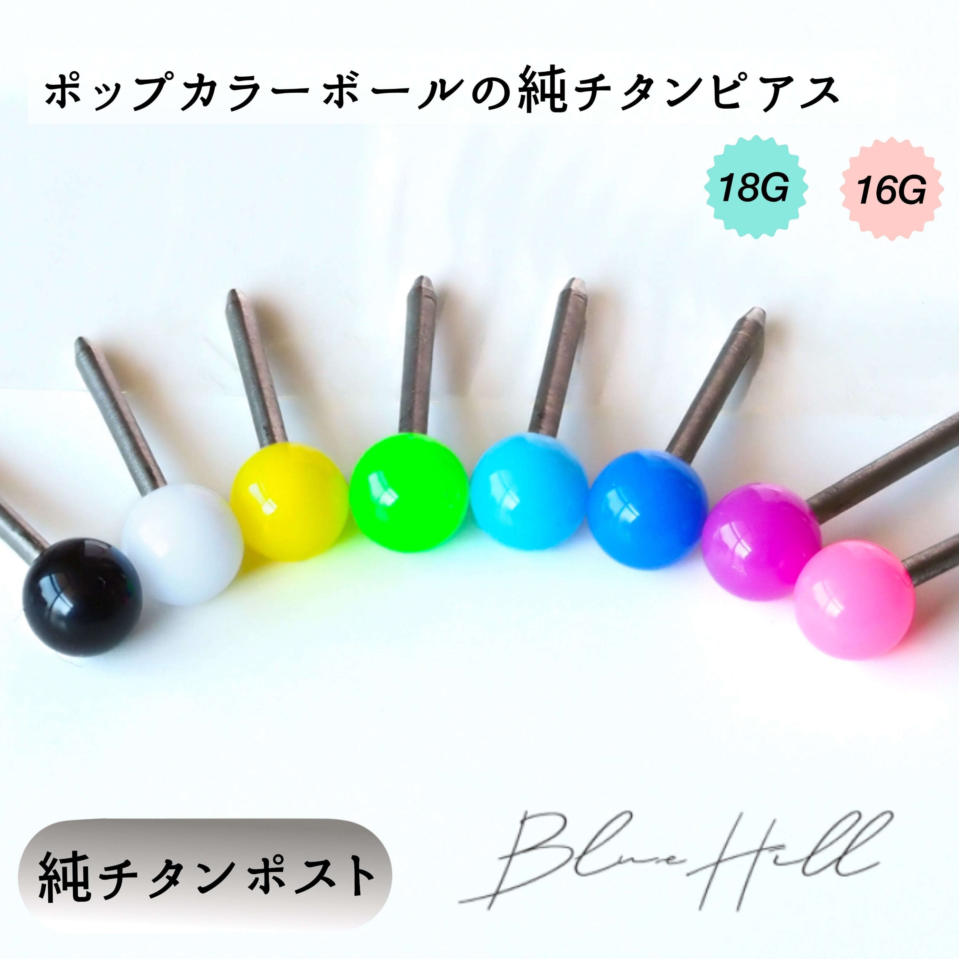 つけっぱなし アクリルカラーボール セカンドピアス 4mm 純チタン 太軸 片耳 【2-16】 アレルギー 金属アレルギー 対応 ピアス 軸太 チタン ロングポスト BlueHill