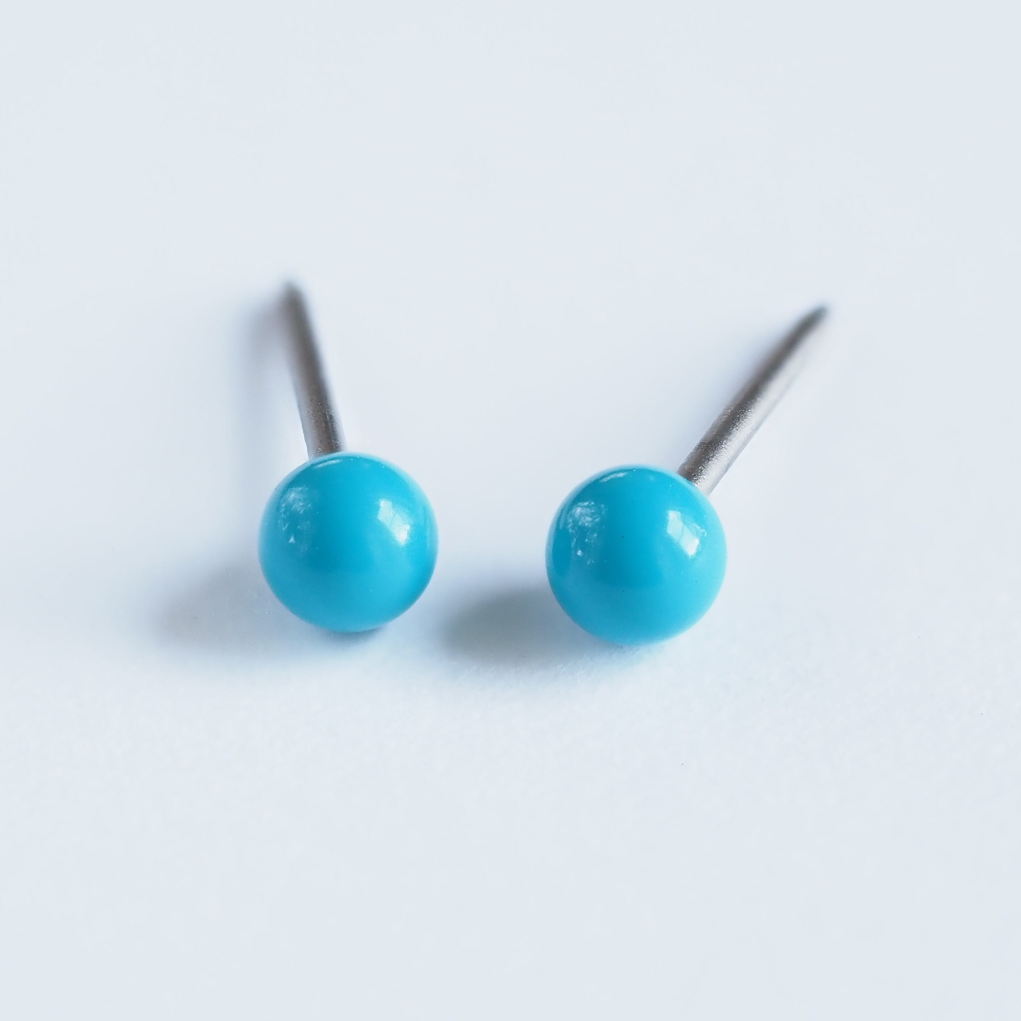 ターコイズ セカンドピアス 4mm 純チタン 軸太 片耳販売 です。