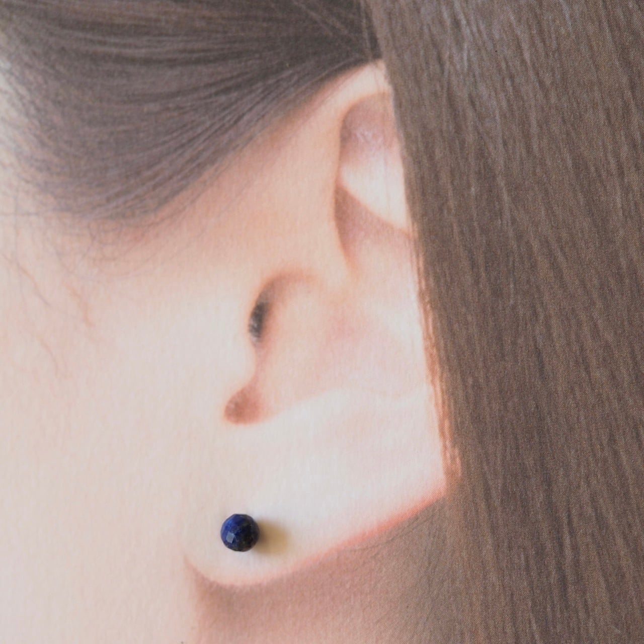 ラピスラズリ クリスタルカット 4mm セカンドピアス 純チタン 軸太 片耳販売です。