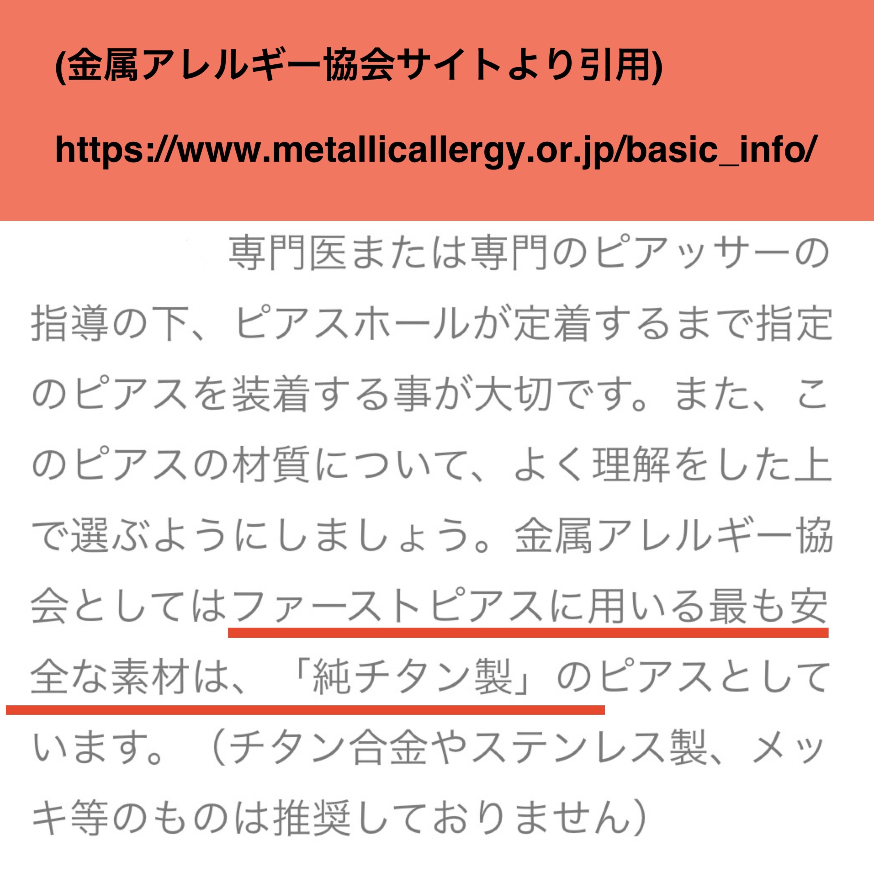チタンなのにアレルギー反応が出た!という経験をお持ちの方は、もしかしたらそういった低品質の物を付けてしまったのかもしれません。