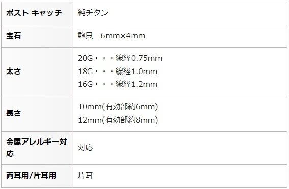 20G-10mm:線径0.75mm ポスト長さ10mm(有効部約6mm)