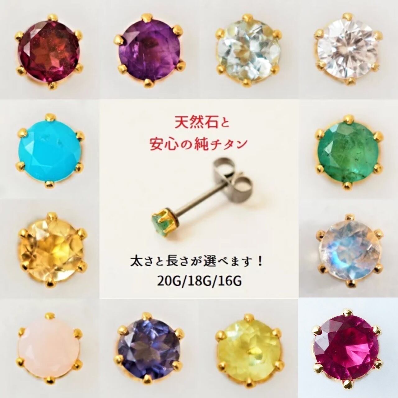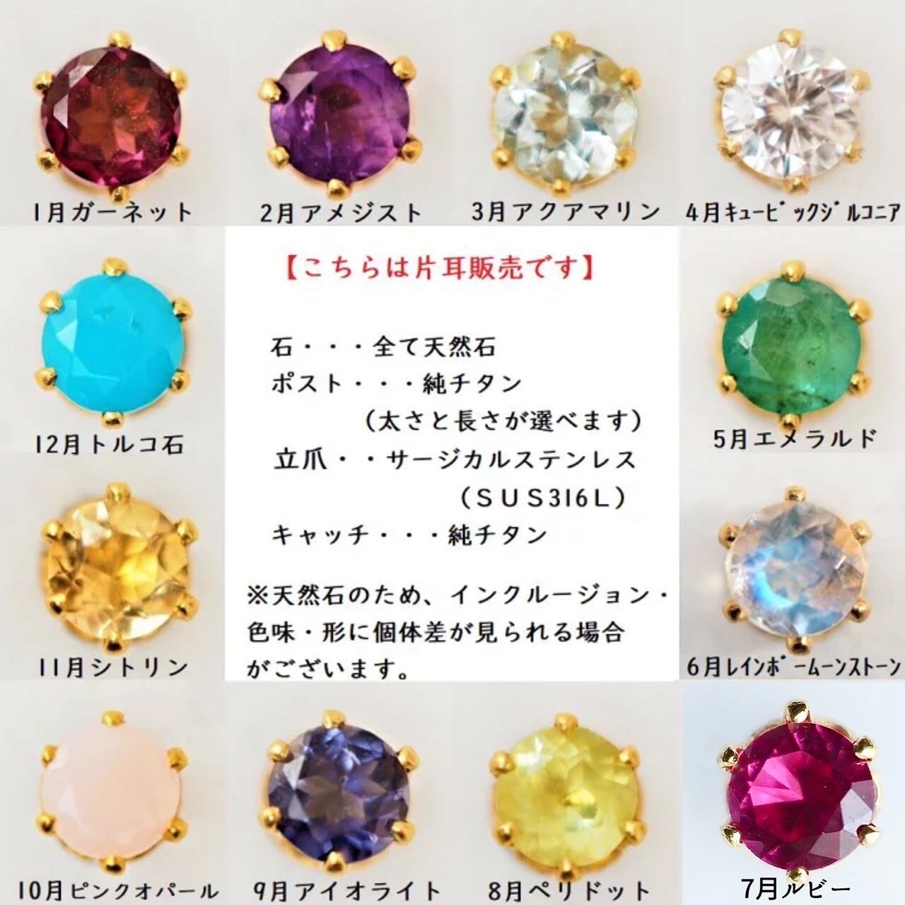 立爪 Gold 誕生石 セカンドピアス ゴール 純チタン 太軸 片耳販売です。