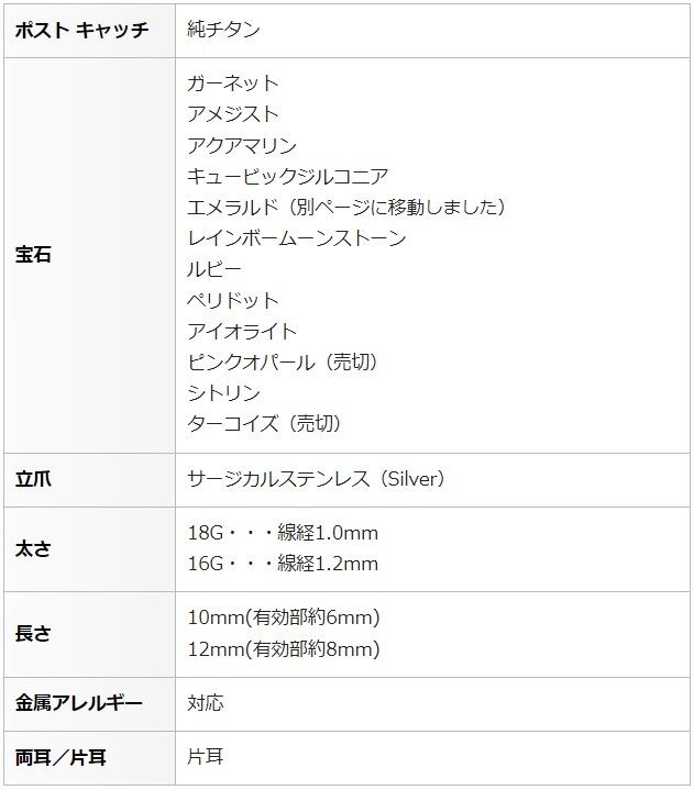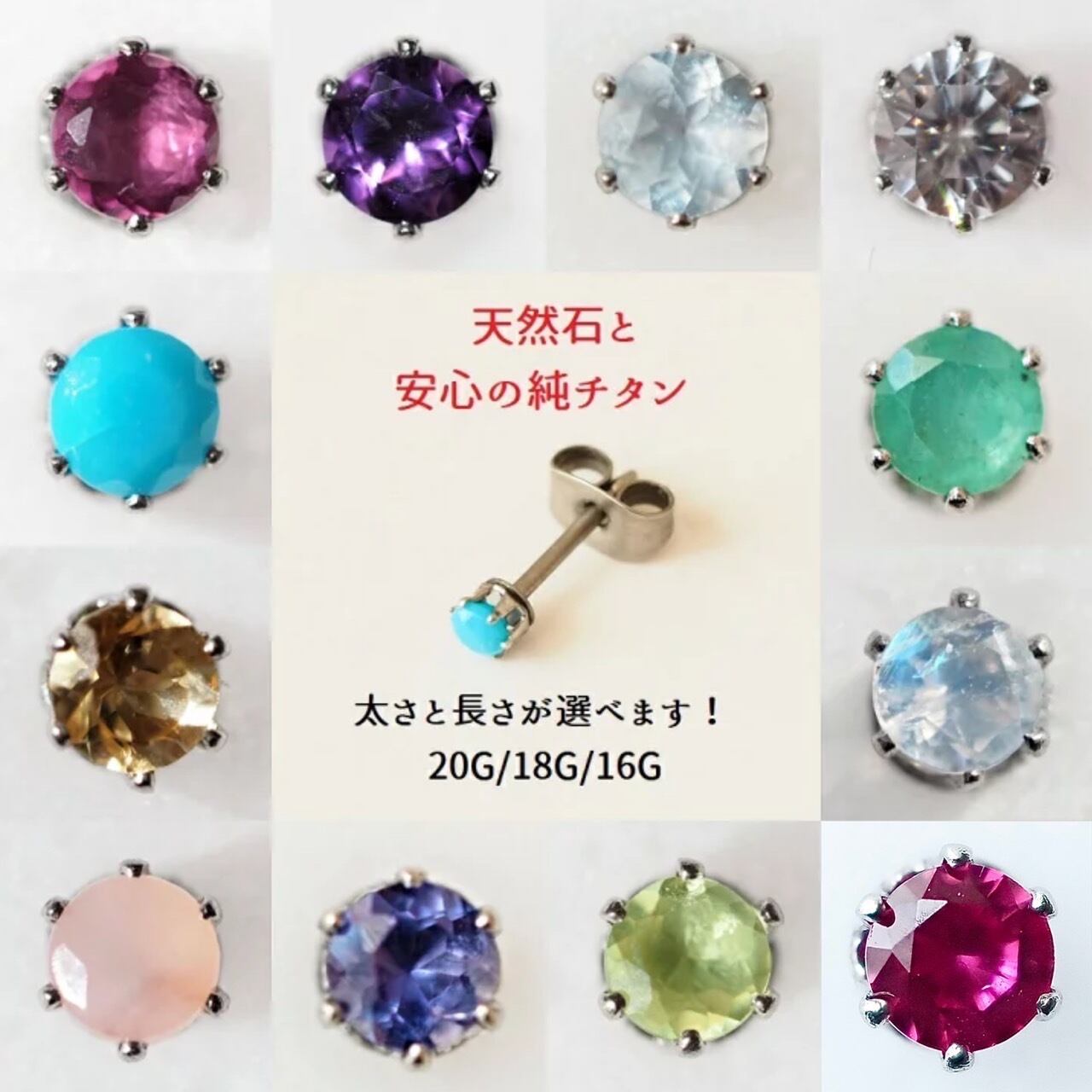 立爪 Gold 誕生石 セカンドピアス ゴール 純チタン 太軸 片耳販売です。