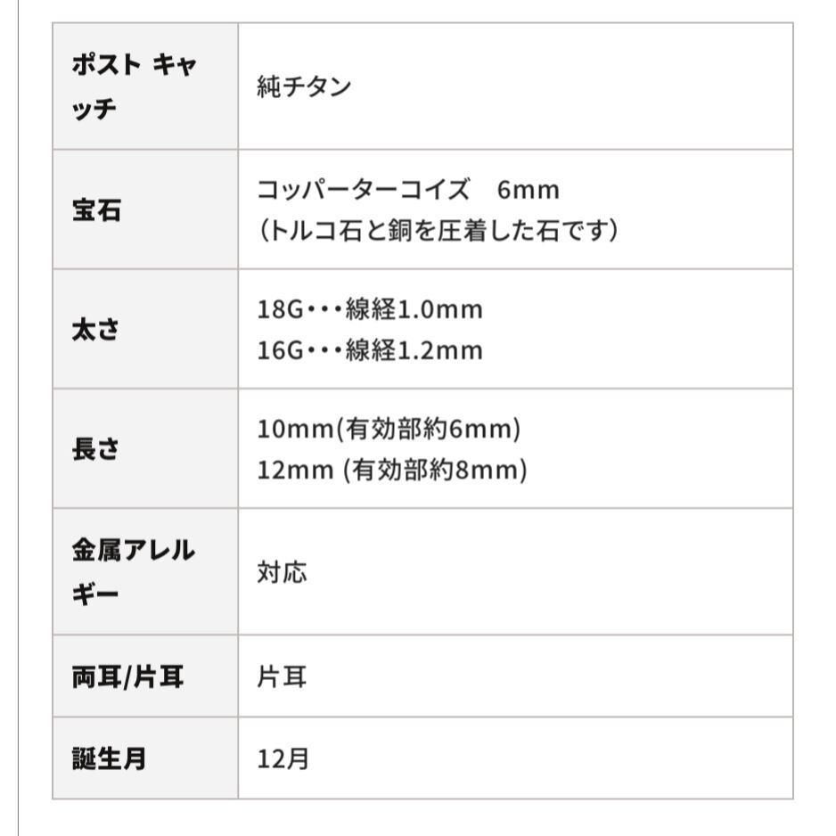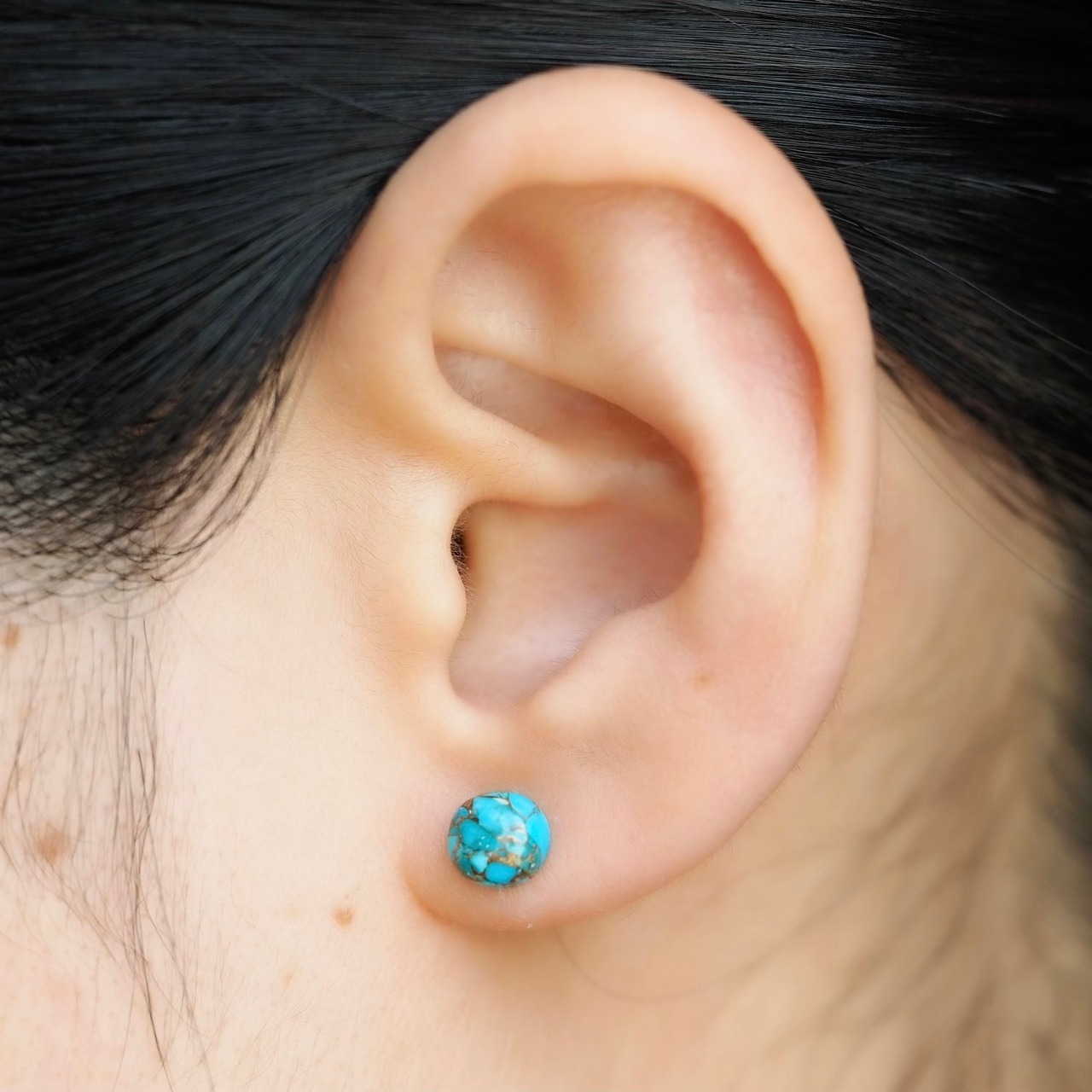 コッパーターコイズ セカンドピアス 純チタン 軸太 片耳販売です。