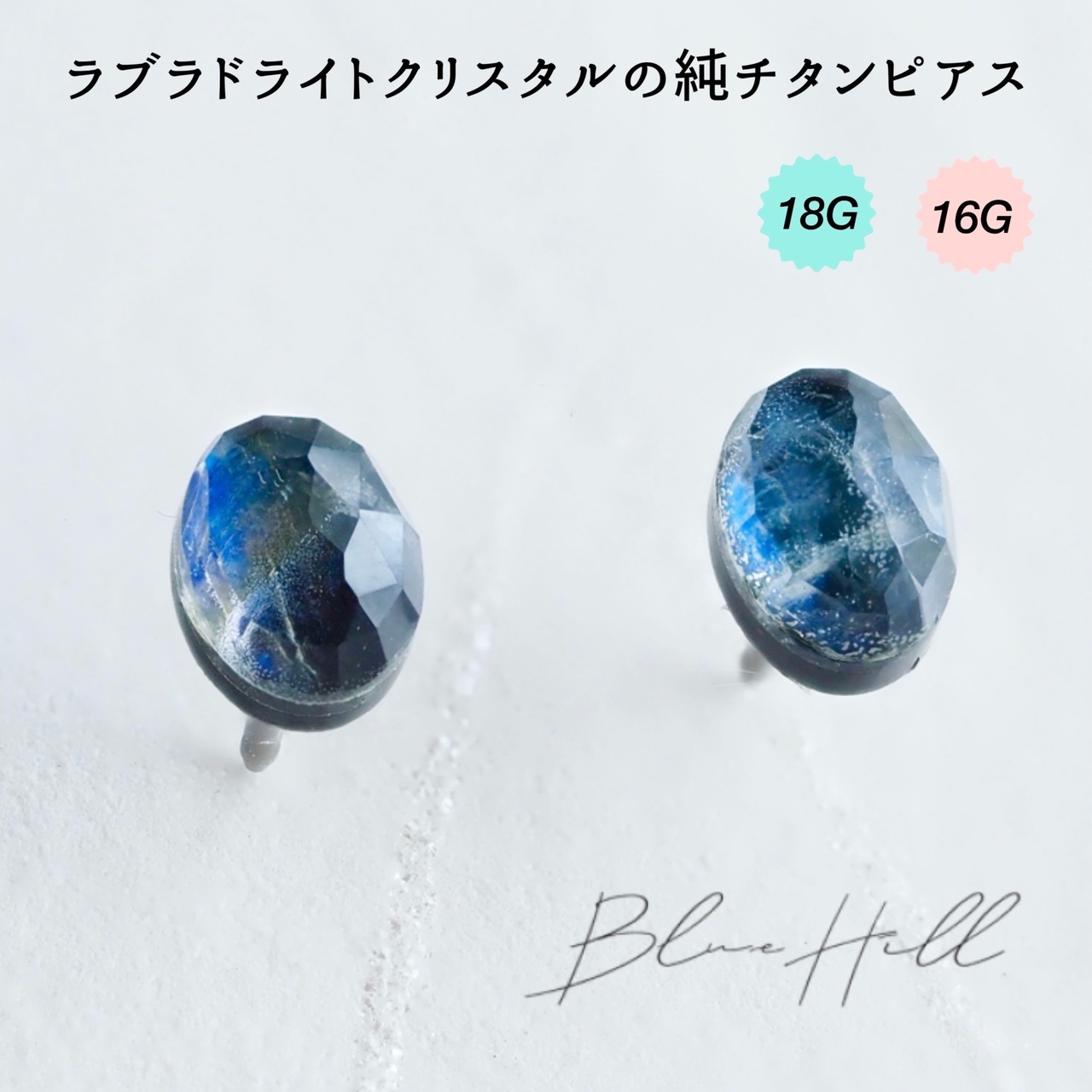 ラブラドライトクリスタル セカンドピアス 純チタン 軸太 片耳販売です。