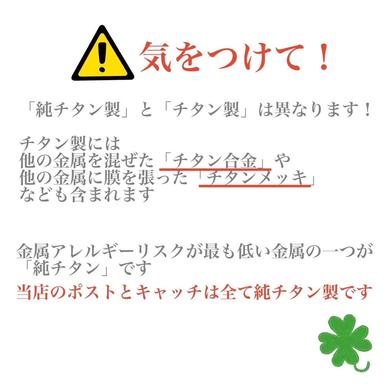 当店の純チタン金具について・・・