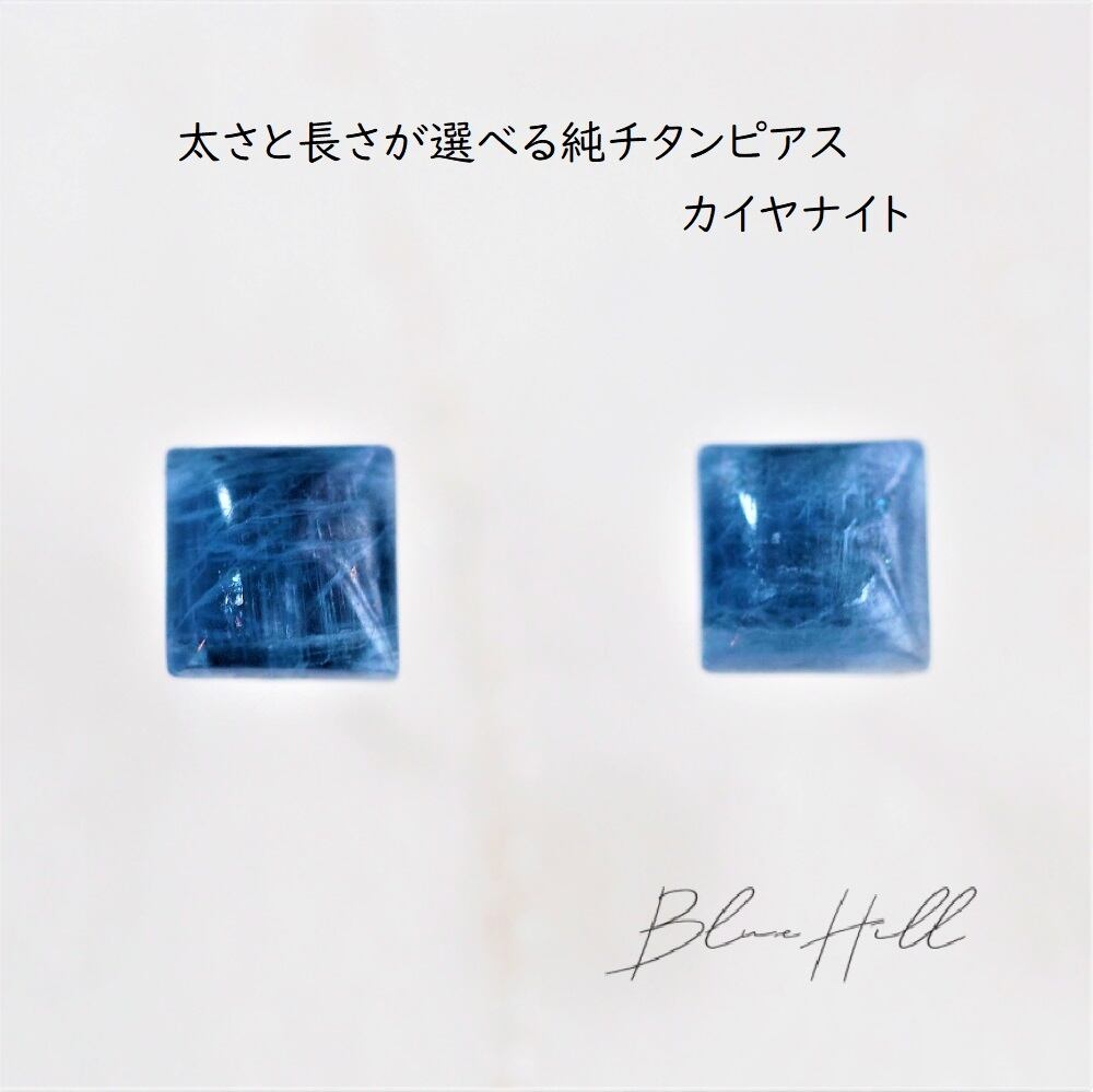 カイヤナイトスクエア セカンドピアス 純チタン 太軸 片耳 アレルギー 金属アレルギー 対応 ピアス 軸太 チタン ロングポスト ゲージ 16G 18G 20G かわいい おしゃれ BlueHill 天然石 青 ブルー カイヤナイト