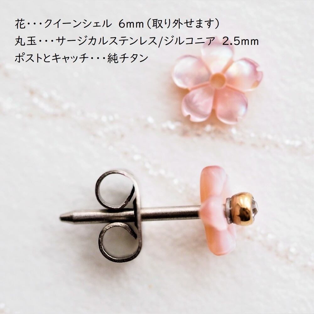 桜シェル 2way セカンドピアス 純チタン 軸太 片耳販売です。