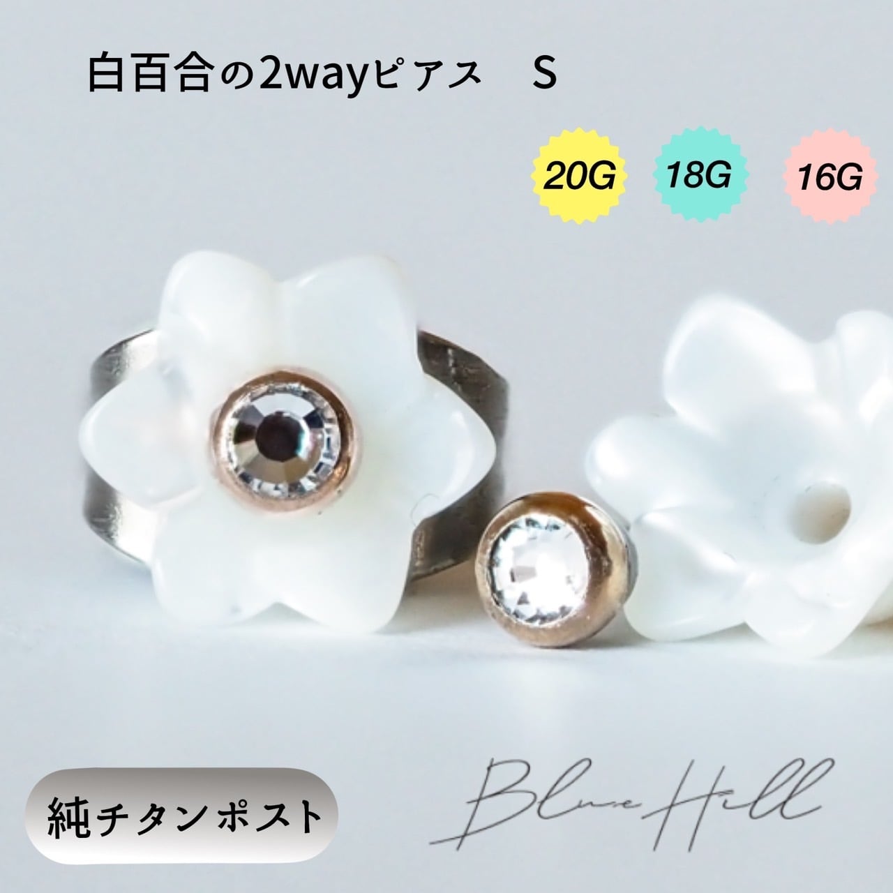 白百合 2way Sサイズ セカンドピアス 純チタン 軸太 片耳販売です。